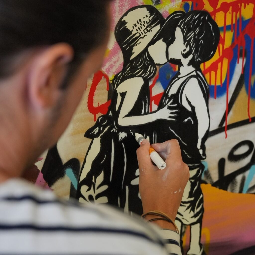 Les jeunes participants découvriront plusieurs techniques artistiques du street art. Ils réaliseront avec l’artiste un tag sur carton, qu’ils personnaliseront avec un pochoir.