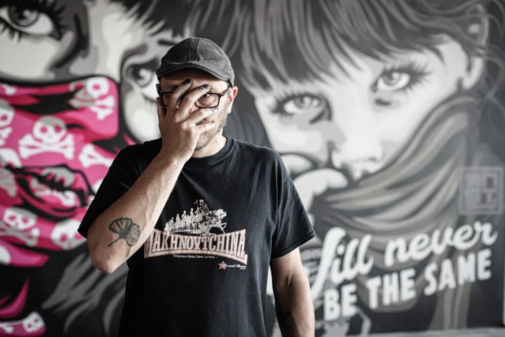 Après un premier ancrage dans la rue, il réinvestit intensément l’espace urbain à partir de 2009, affirmant un pratique à la frontière entre intervention directe et travail d’atelier. Son oeuvre, nourrie par l’actualité sociale et politique, se distingue par une tension entre provocation et poésie, interrogeant avec force notre rapport au monde contemporain.